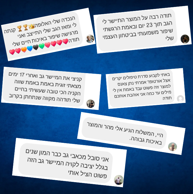 מהלקוחות מדווחים שהתיישר להם הגב והפסיק לכאוב תוך 9 ימים